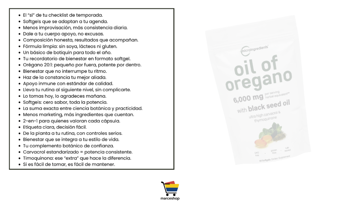 El carvacrol del orégano y la thymoquinona de la semilla negra tienen propiedades antimicrobianas, antioxidantes y antiinflamatorias probadas. Su combinación ofrece un refuerzo completo para tus defensas, digestión y energía.